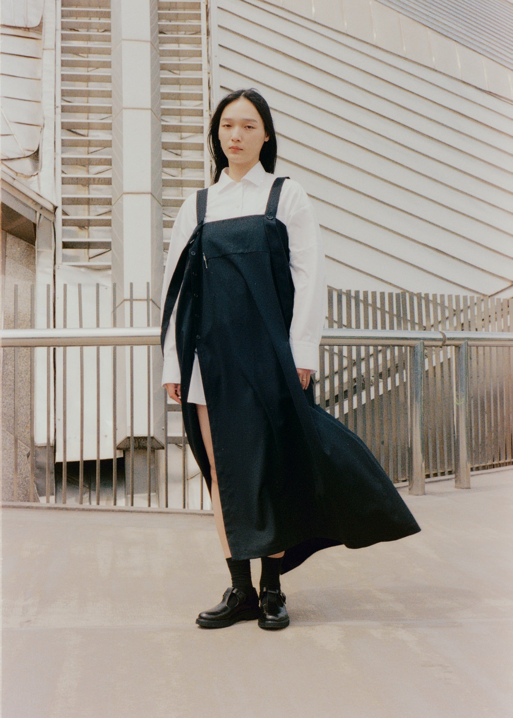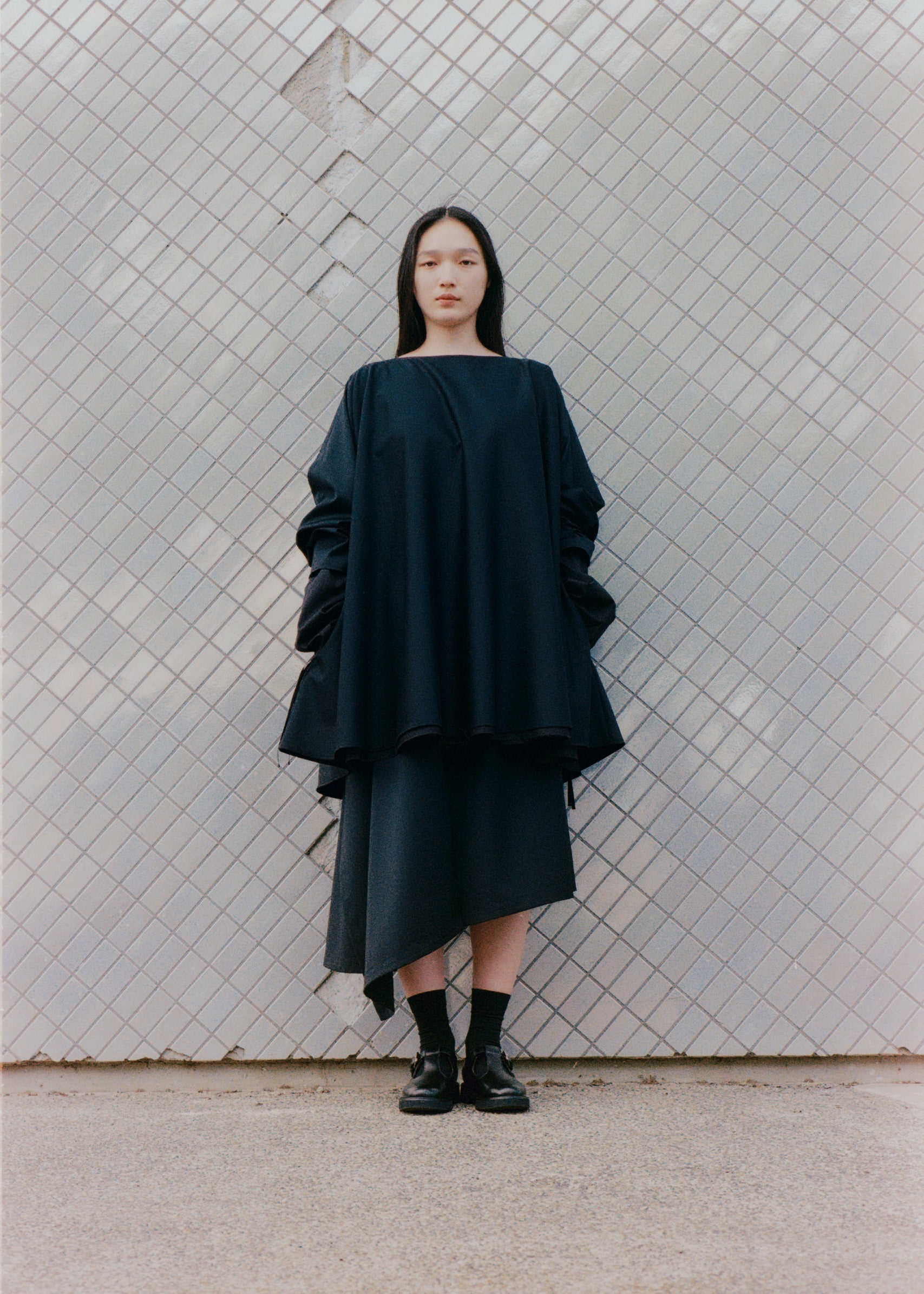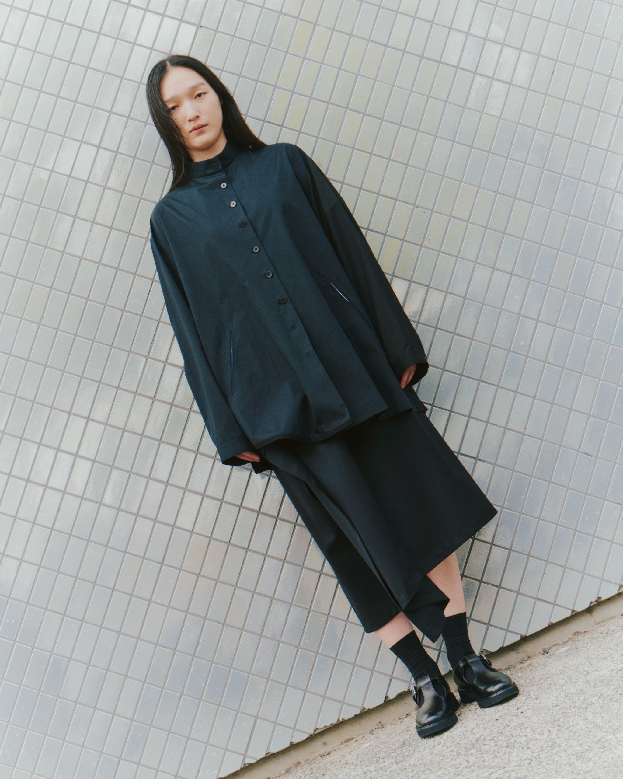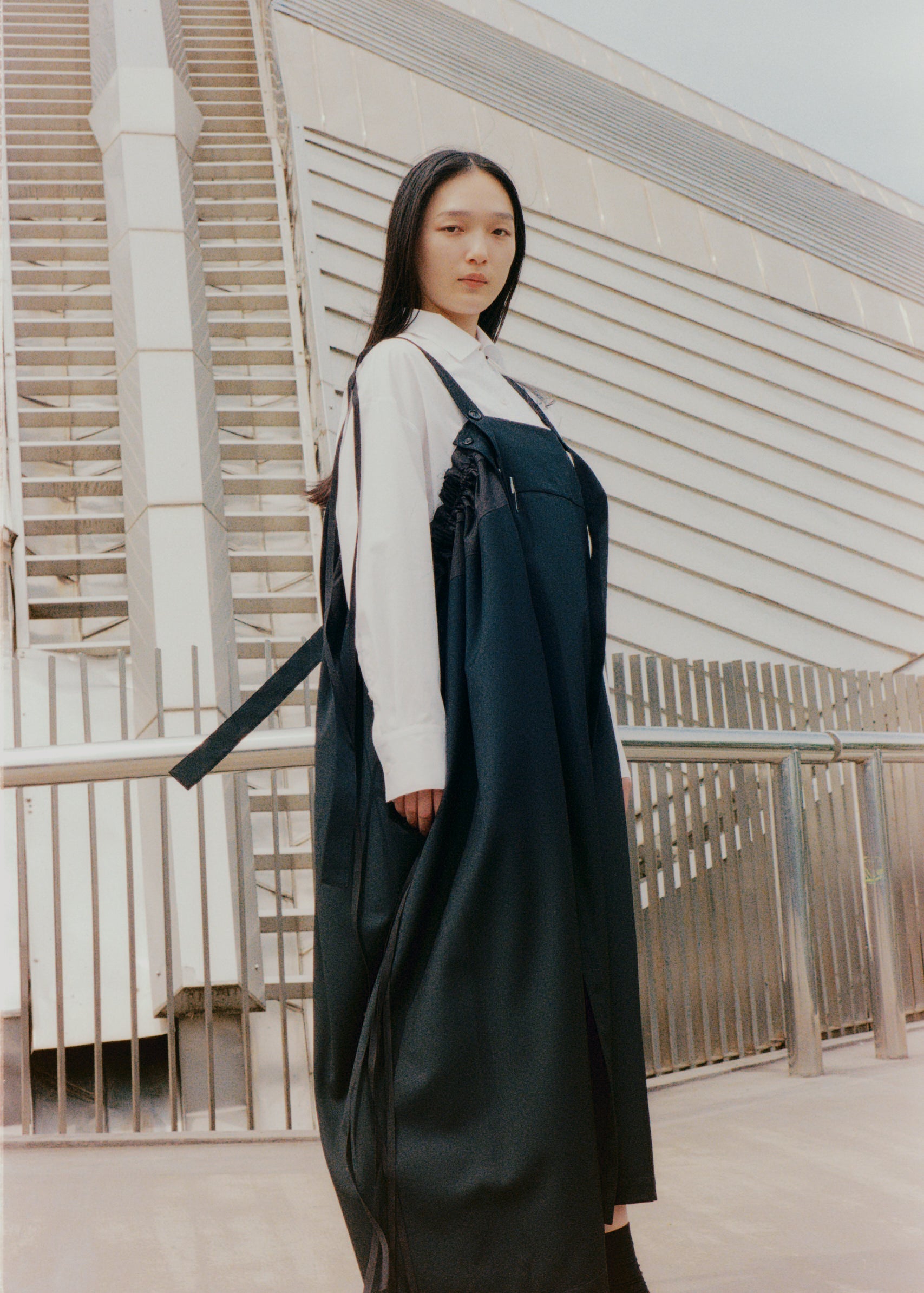 This approach helps us create designs that feel both fresh and familiar, evolving from small fragments into complete, cohesive collections. Collection 005 consists of one coat, two dresses, three bottoms, and four tops.
