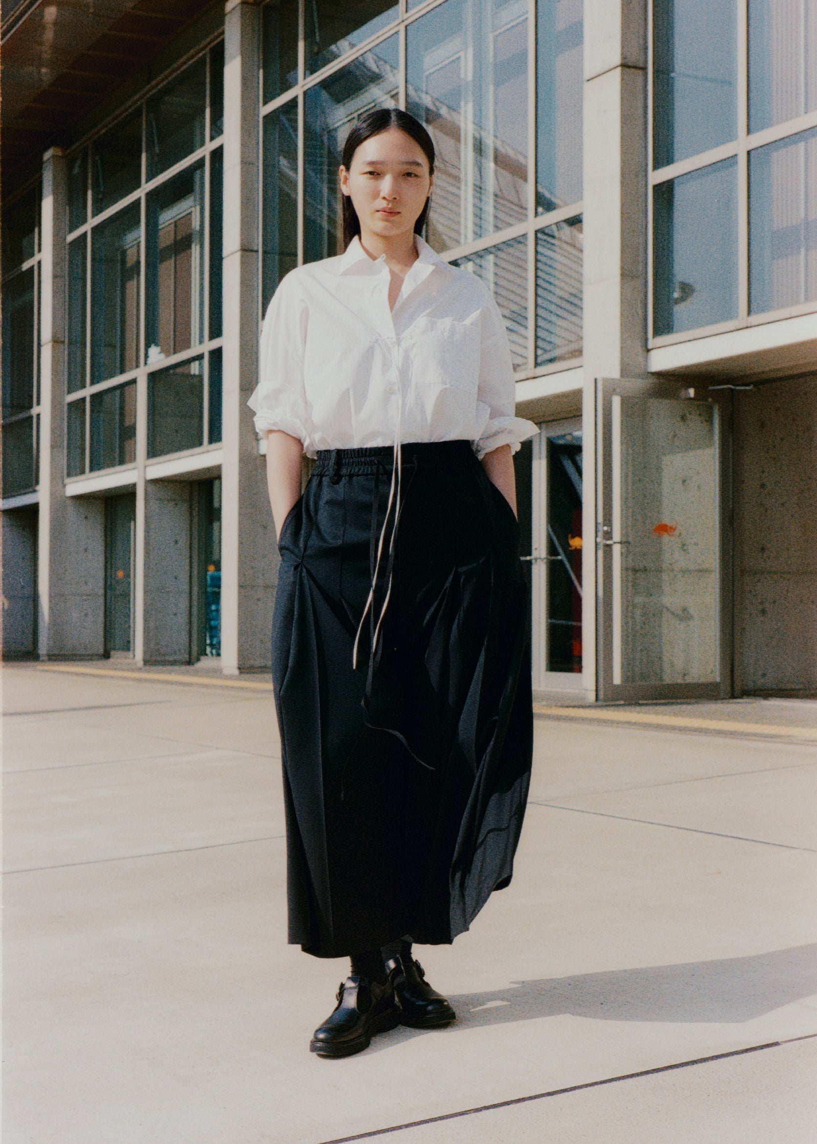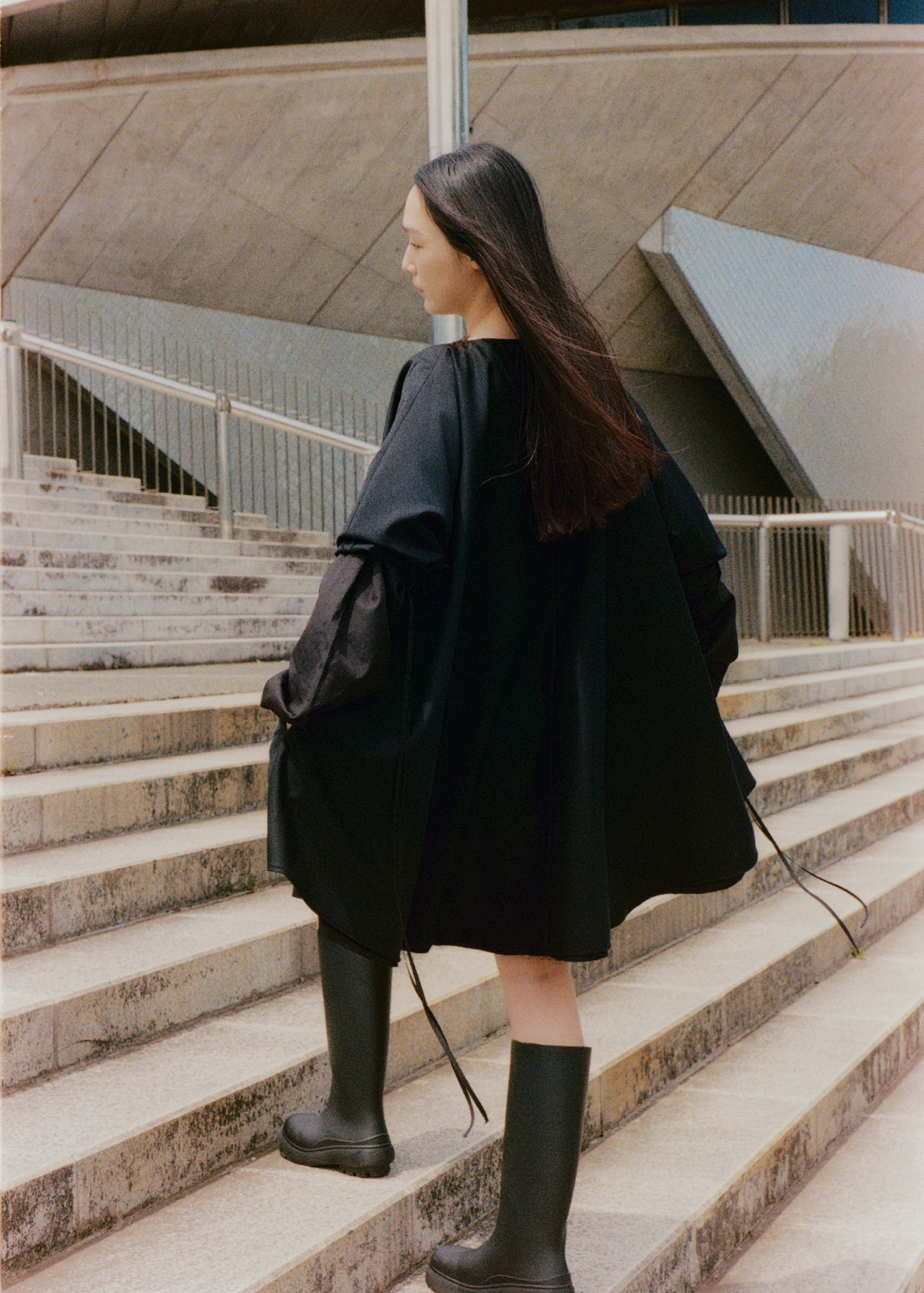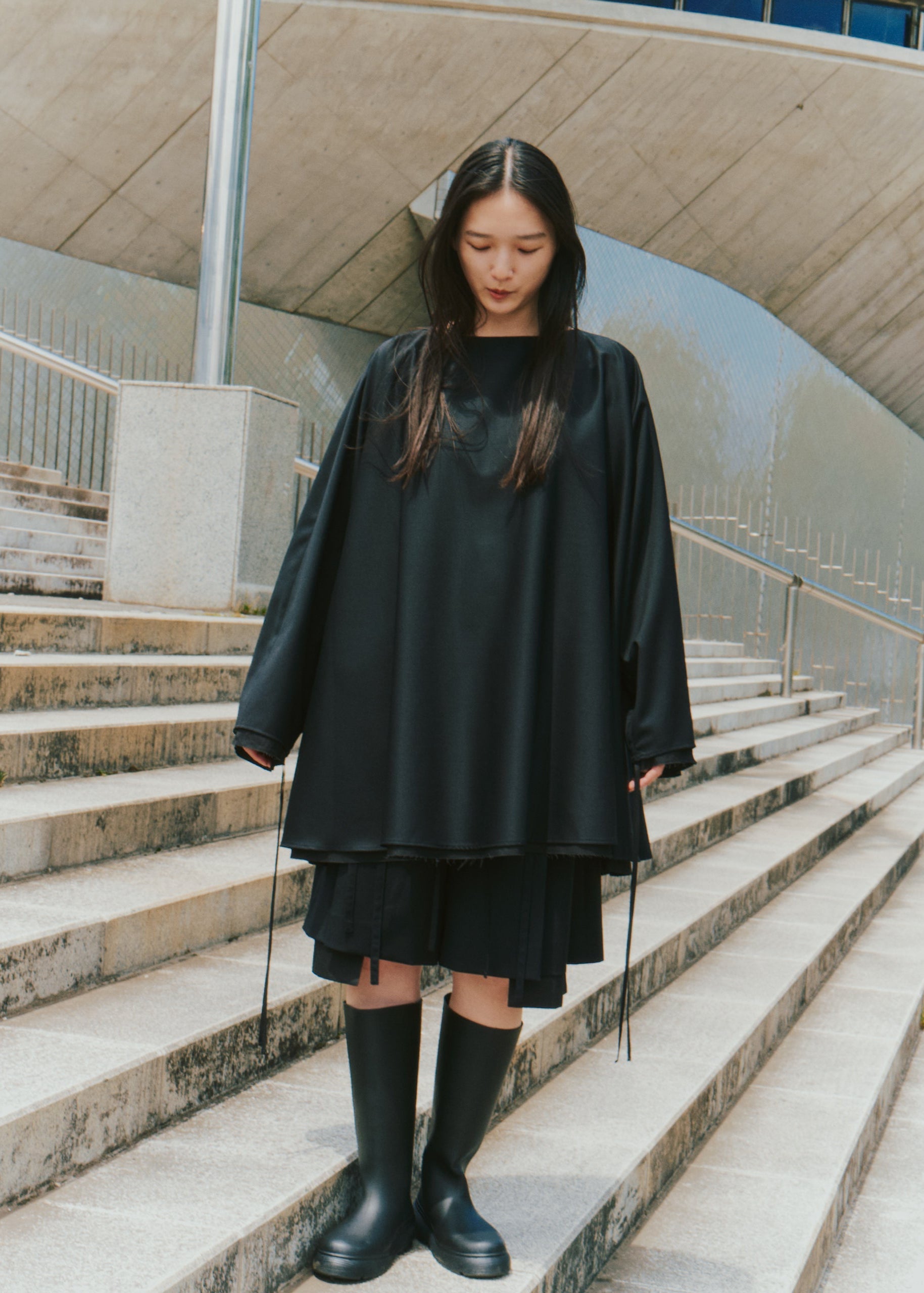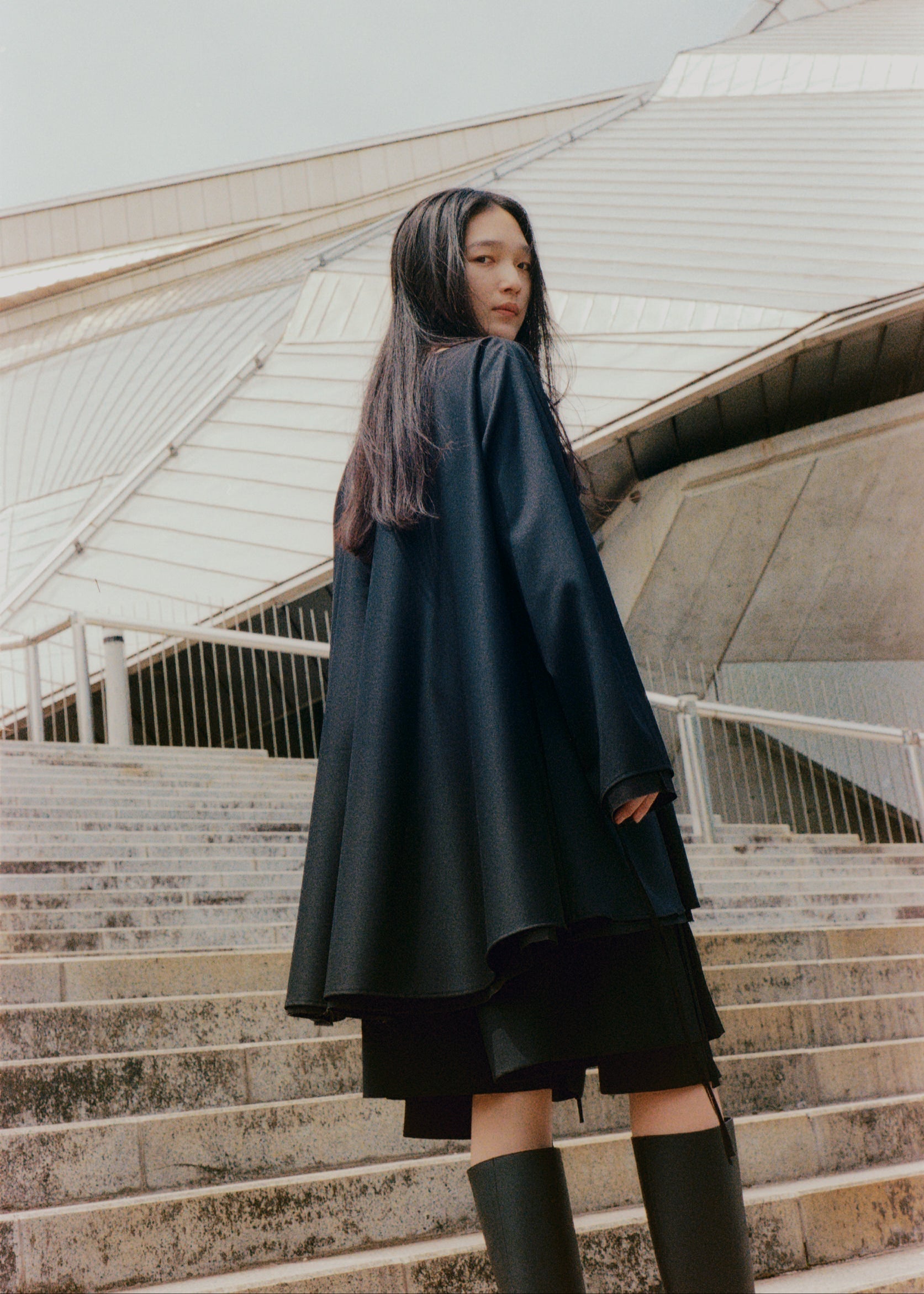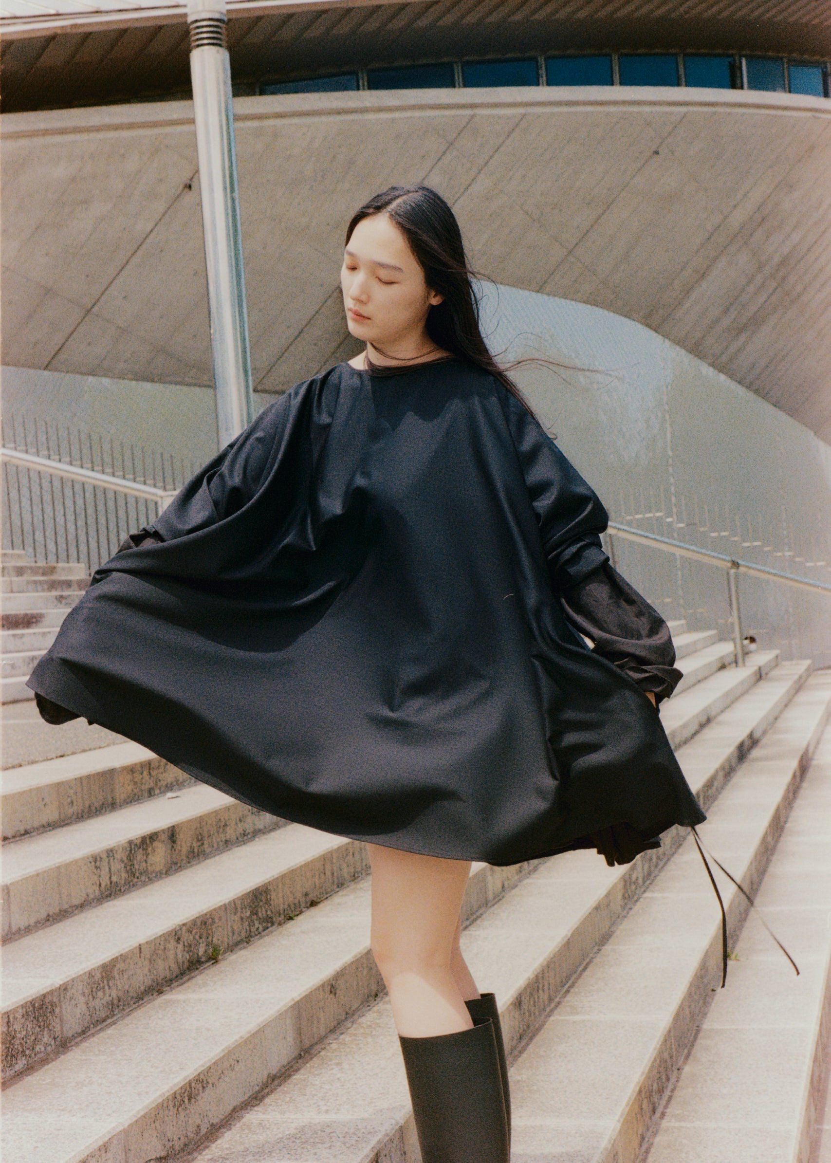 This approach helps us create designs that feel both fresh and familiar, evolving from small fragments into complete, cohesive collections. Collection 005 consists of one coat, two dresses, three bottoms, and four tops.