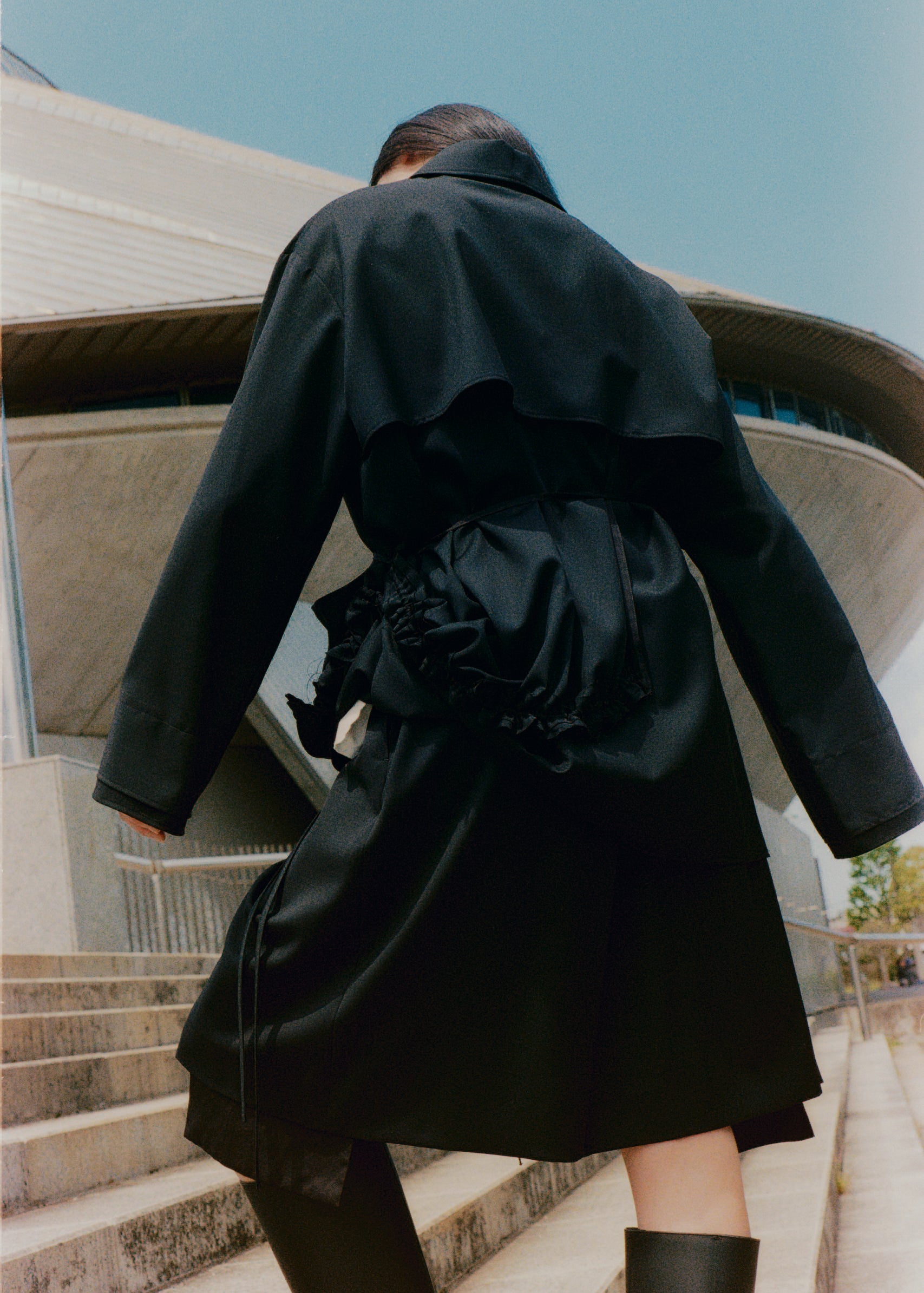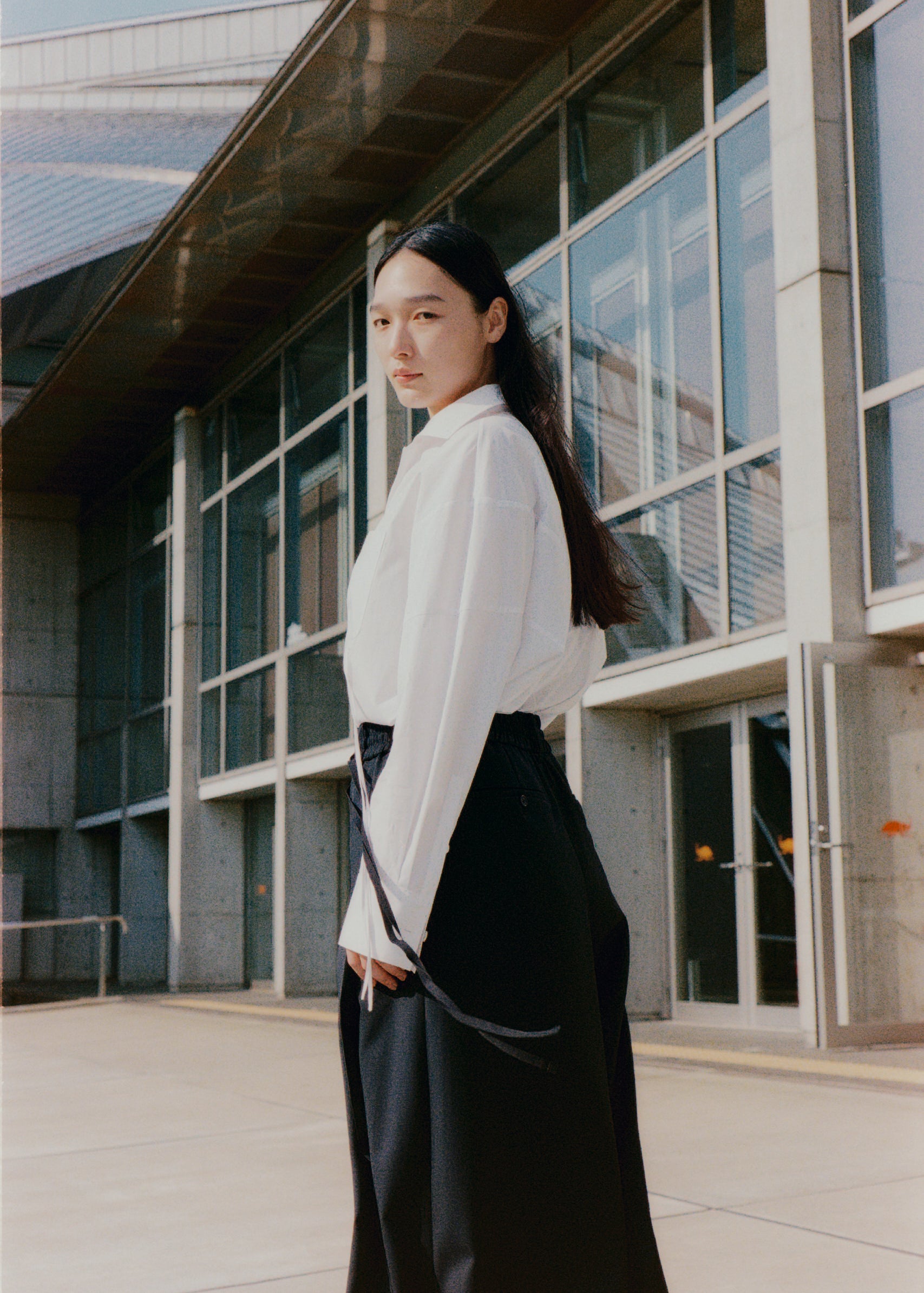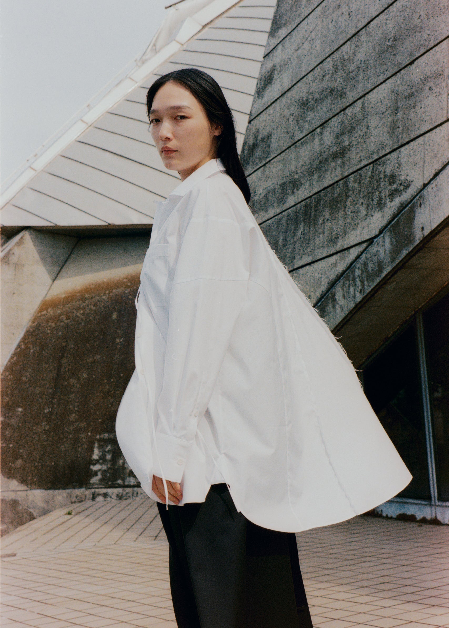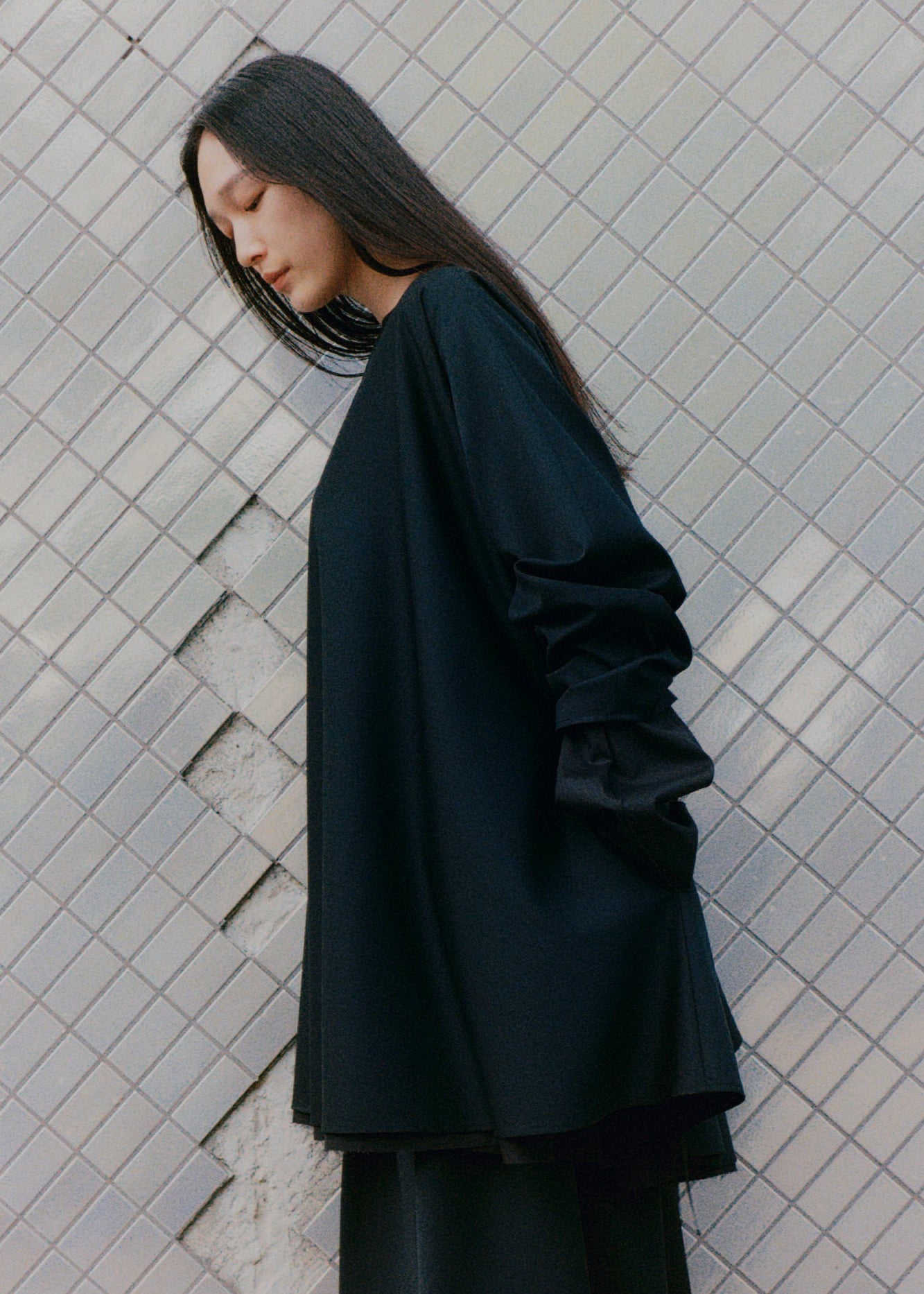 This approach helps us create designs that feel both fresh and familiar, evolving from small fragments into complete, cohesive collections. Collection 005 consists of one coat, two dresses, three bottoms, and four tops.