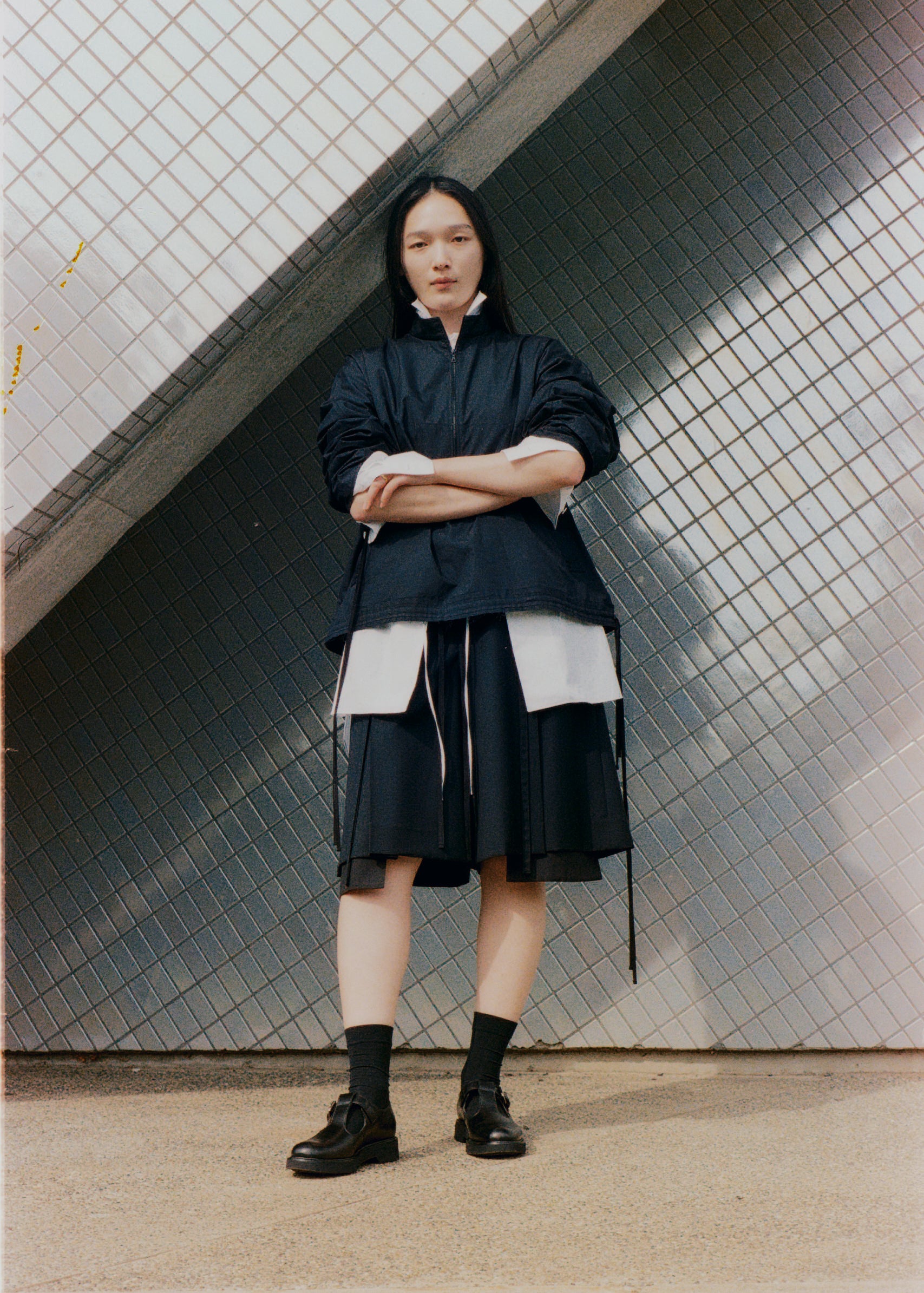 Blouson Jacket / Camp Collar Shirt / Layered Wrap Skirt