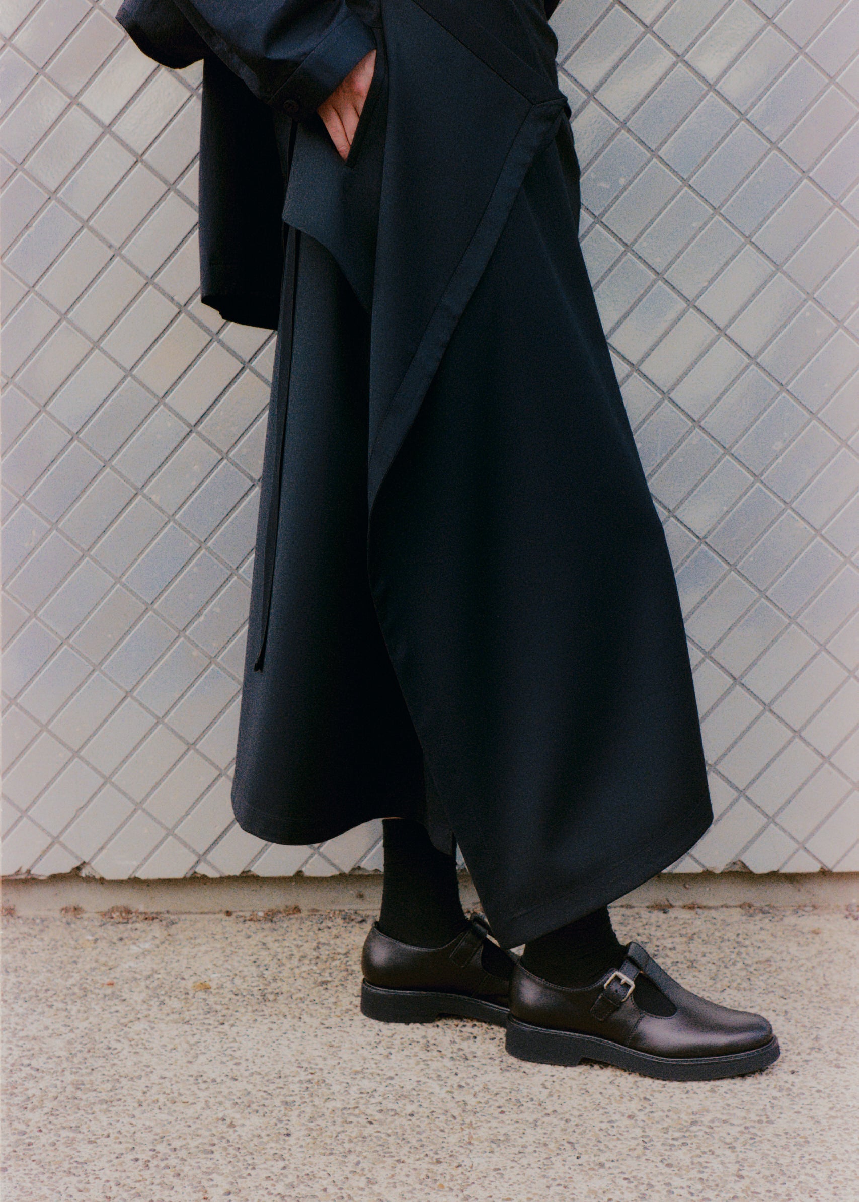 Long Coat / Paneled Shirt / Layered Wrap Skirt