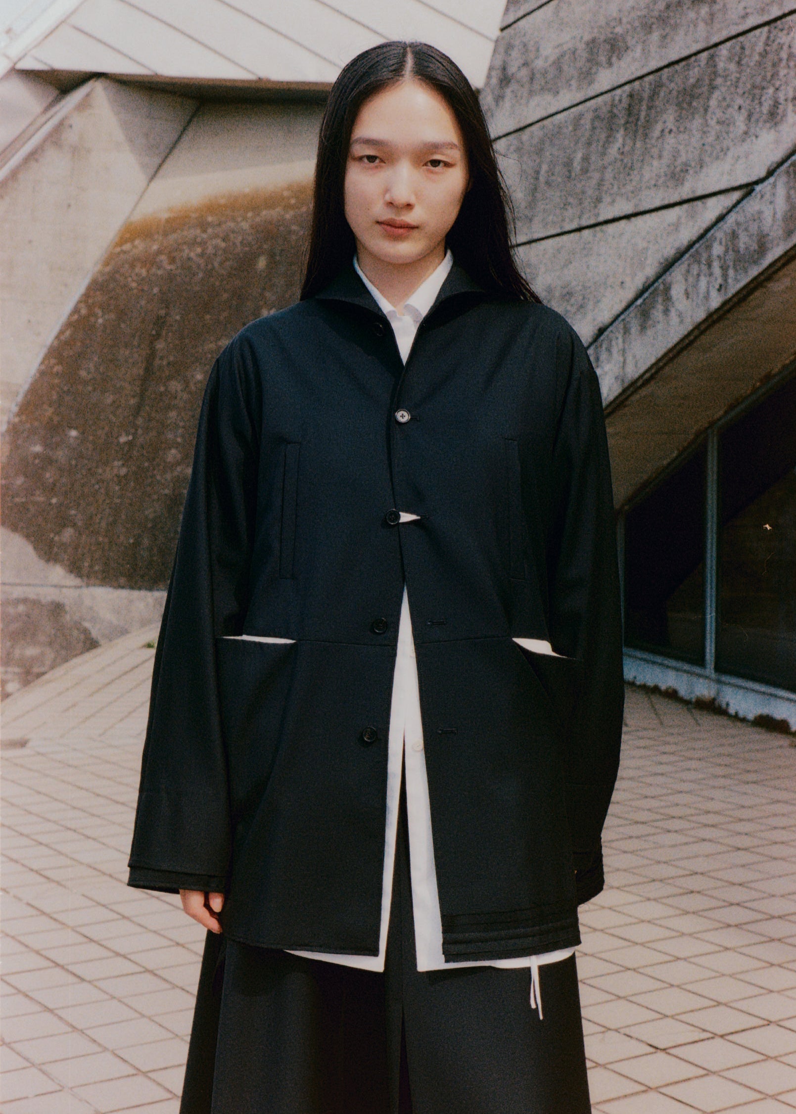 Long Coat / Blouson Jacket / Camp Collar Shirt / Layered Wrap Skirt